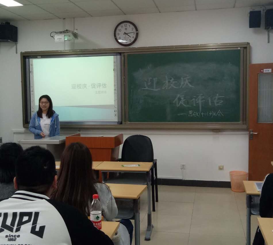 本科生各个班级按照“以评促建、以评促改、评建结合、重在建设”的方针,分别召开了“迎校庆,促评估”主题班会。