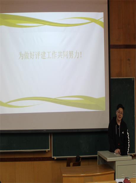 最后,分党委书记兼副院长阮广宇老师发言。他为同学们详细介绍了评估的时代背景和重要价值,提出“校荣我荣”在新的时代背景下意义重大。并强调了宿舍卫生和课堂纪律问题,提醒广大同学从自身做起,树立主人翁意识,保证宿舍的干净整洁,认真学习,维护正常教学秩序,注重文明礼貌,以充满信心、积极向上的姿态来迎接此次的评估。