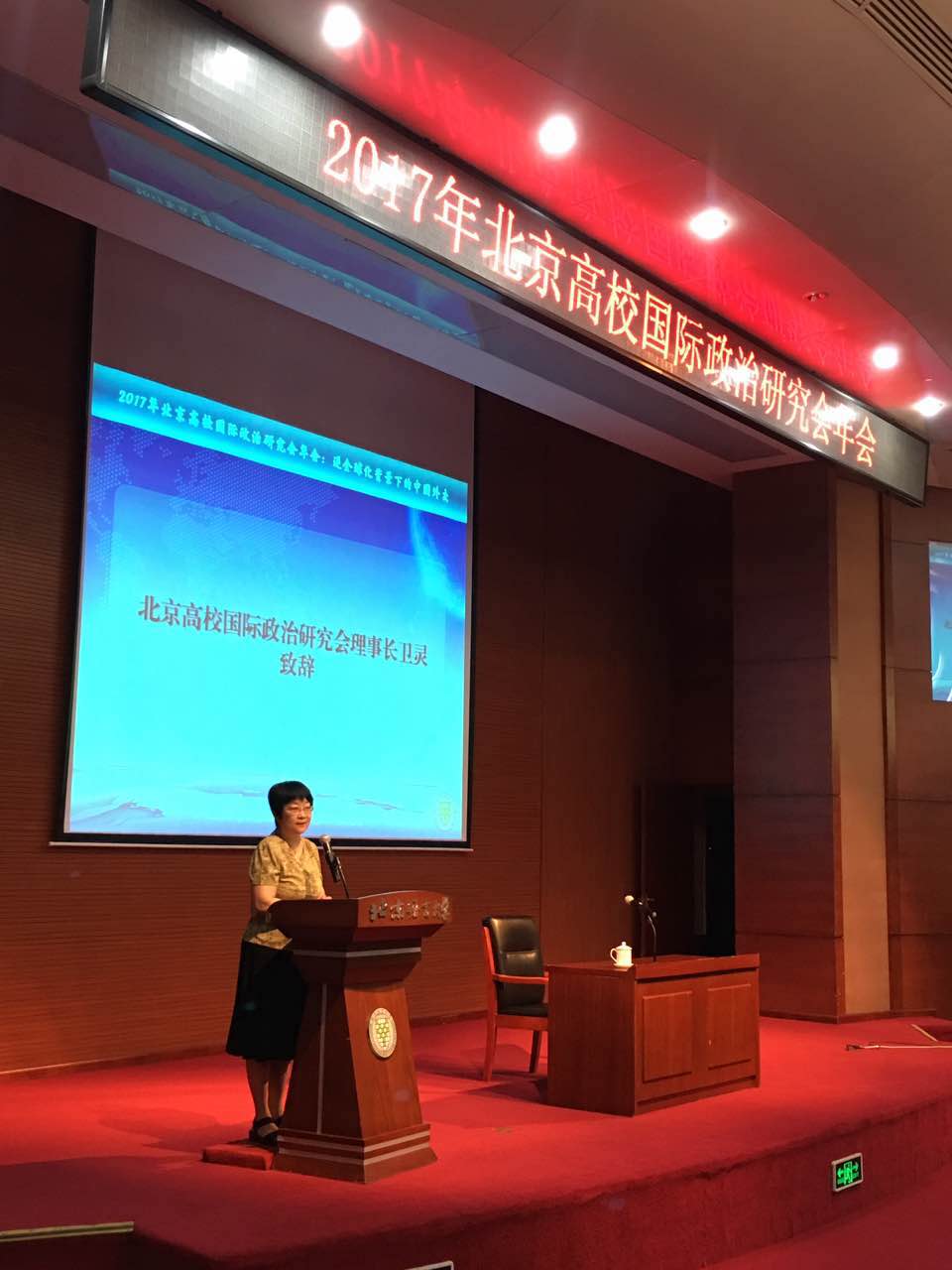 2017年北京高校国际政治研究会年会在北语隆重举行,卫灵理事长致辞并做大会总结。