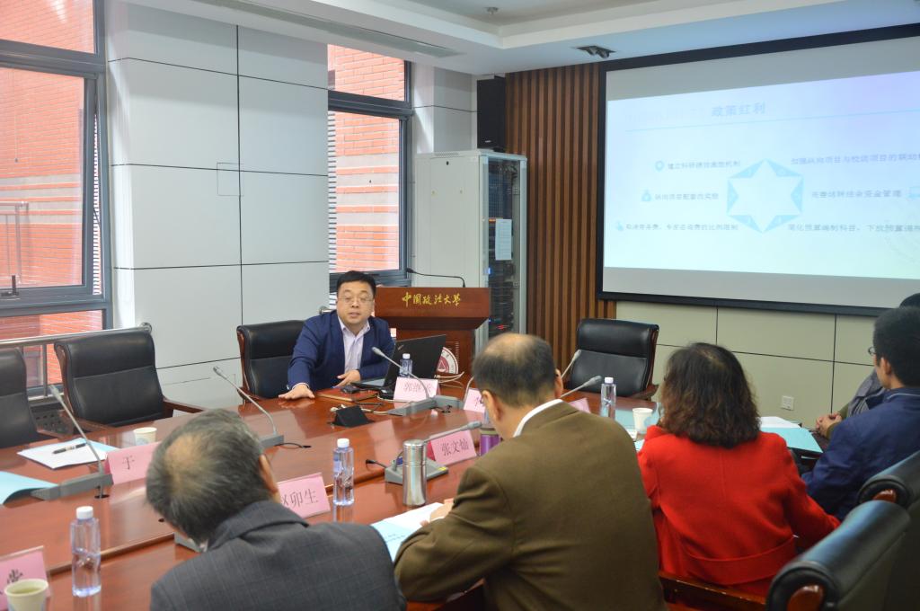 的科研工作也提出了几点要求。首先,马院必须要志存高远。马克思主义理论一级学科是在一流法科强校大背景下,与法学关联度非常高的学科,应当对我校未来办成一流大学做出非常重要的贡献。其次,要在学校、学院、学科、学人、学子之间形成合力,共同发展。第三,在下一步的发展过程中,要找到痛点,找到目前制约和影响马院科研发展的症结之所在,不断结合学院教师自身特点,组建科研团队。最后,时校长提出,希望通过此次会议,能够让马院各位老师更加振奋,实现科研快速发展。