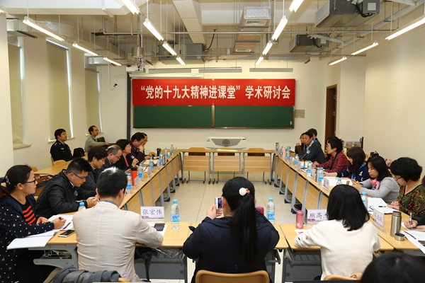 研讨会上,来自南京大学、南京师范大学、天津师范大学、中国政法大学、中国社会科学院、北京工商大学、河北大学、中国人民公安大学、南开大学等高校、学术机构的马克思主义专家学者齐聚一堂,围绕“中国共产党的三次顶层设计”“党的十九大报告中的‘变’与‘不变’”“立德树人、德法兼修:党的十九大精神进课堂的探索与思考”等议题进行深入研讨交流。
