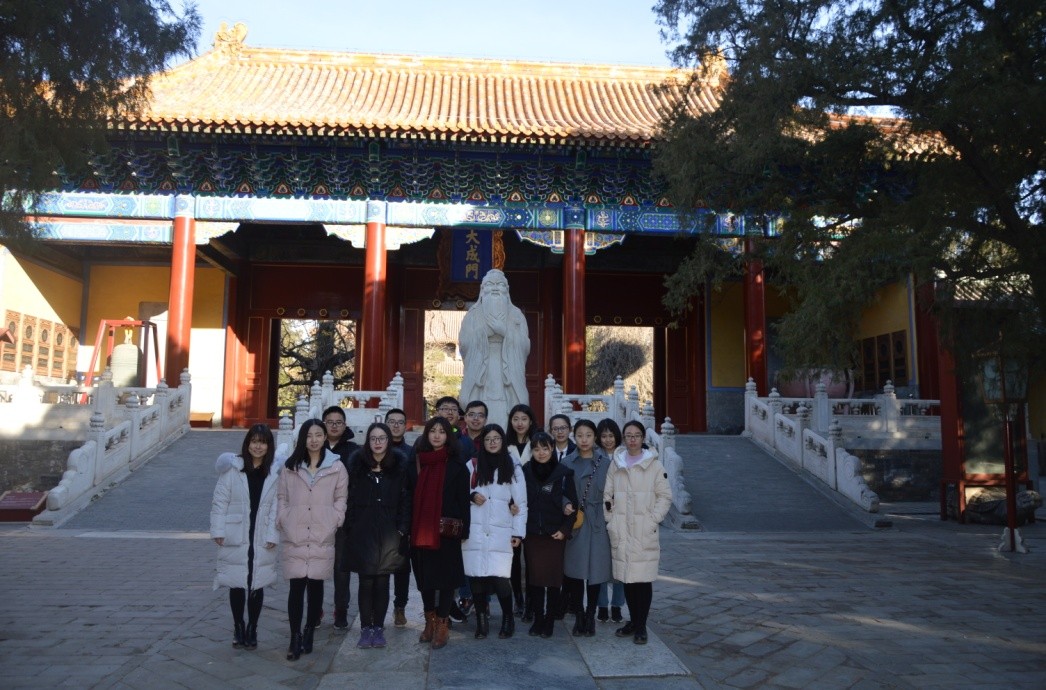 2017年11月23日,2017级硕士班同学来到了北京孔庙和国子监。孔庙的古建筑浓缩了千年儒家文化精髓,体现了古代儒学至高的地位,同学们深深感悟到中华传统文化的博大精深。国子监是元明清三代国家设立的最高学府和教育行政管理机构,这个初创于隋终结于清的教育考试选拔制度,起到了选拔人才、促进社会公平等重要作用,在世界范围内都产生了重要影响。