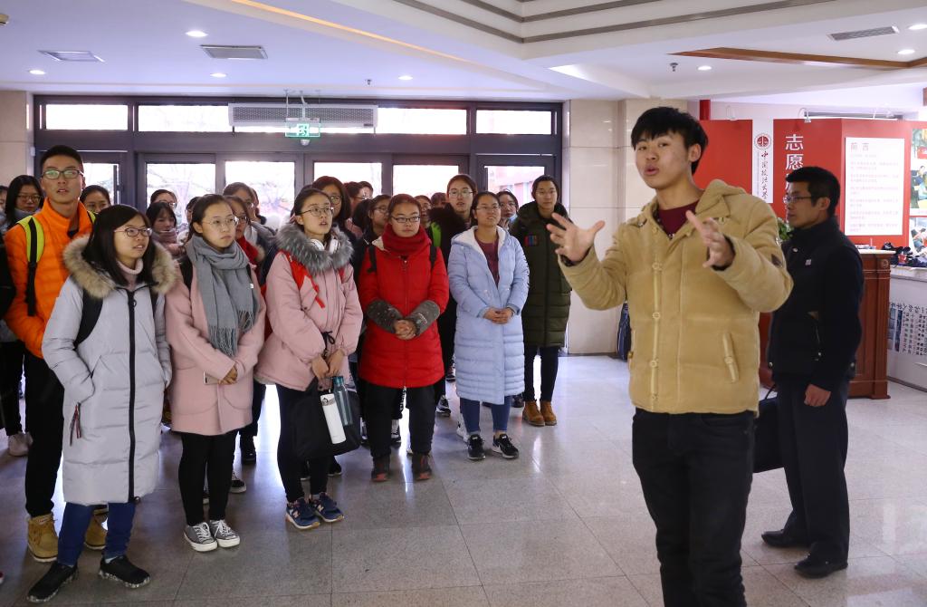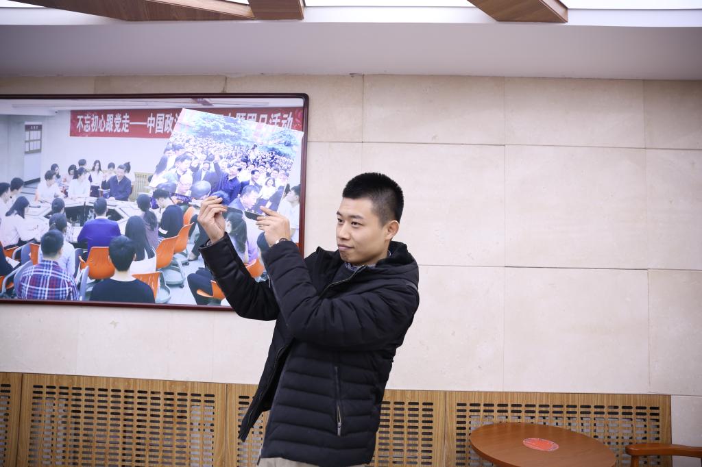 随后,在学生活动中心一楼,张熙廷和程幕君向同学们介绍习近平总书记考察的路线,再现了团日活动及座谈会的场景。张熙廷回忆道,最令他感受深刻的便是习近平总书记在“不忘初心跟党走”的主题团日活动中对同学们的真情流露的关切与勉励。张熙廷说:“当时习近平总书记就直接走到同学中间,聆听了同学们关于电影《焦裕禄》的看法,对同学们的远大志向大加赞扬。并勉励同学们不忘初心,践行焦裕禄精神,在未来实现自身的社会价值。”程幕君则分享了当时团日活动中许多令人动容的细节。程幕君说:“希望在将来,我们能在不同的地方、不同的岗位上发挥出我们的作用,用我们在学习与实践中得到的知识,为祖国向前迈进的每一步而努力奋斗。”同学们仔细地聆听着,现场不时响起阵阵热烈的掌声。