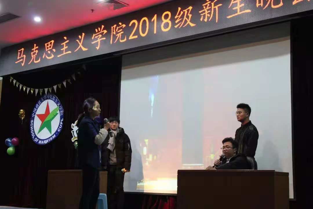 阮广宇书记开场致辞,他谈到,学院历年举办新生联谊会,旨在促进新生融入马院大家庭,到法大找到归属感。新生来到新的学习生活环境中,要实现德智体美劳全面发展,不仅要增强学习能力,更要提升综合素质,成为德才兼备的法大人!