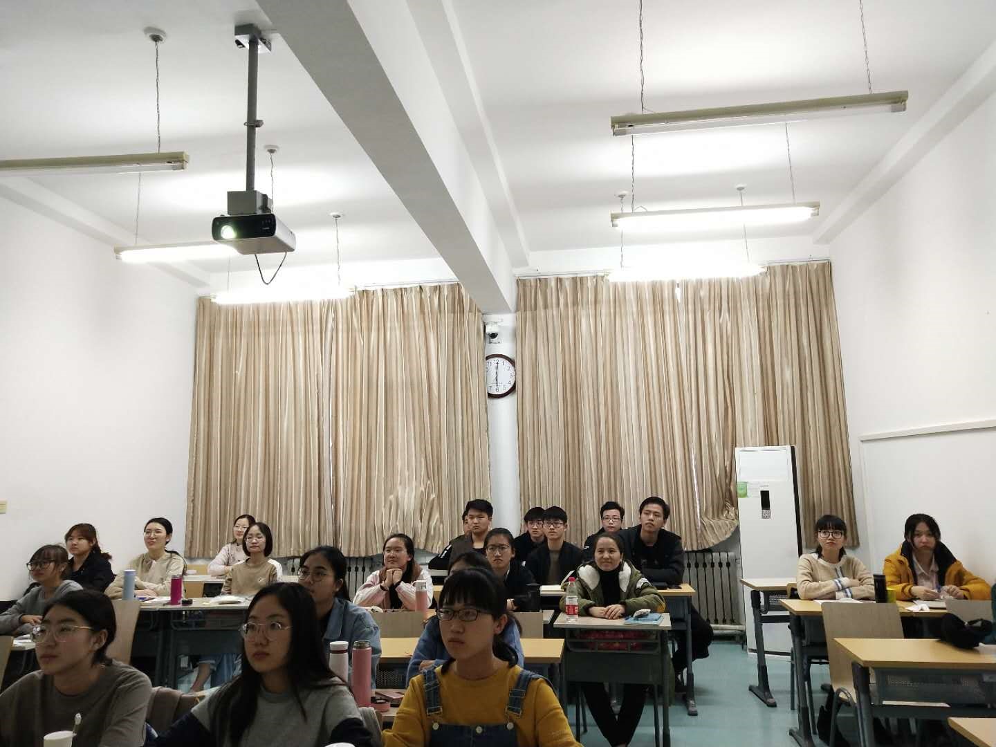 16、17、18年级本科生以班级为单位,分别组织开展围绕“践行总书记讲话精神,争做新时代有为青年”为中心的主题班会。会上同学们分别以“学习习近平总书记5.3讲话精神”和“我心中的焦裕禄”为主题,畅谈自己的感受。首先梳理习近平总书记考察我校重要讲话精神和勉励语精神对自我成长的影响,并表示要树立与当代主题同心同向的理想信念,勇于担当,励志勤学,刻苦磨炼,争当优秀的社会主义建设者和接班人。然后观看影片《焦裕禄》,了解焦裕禄的光辉事迹,同学们都深受感动,纷纷表示要以焦裕禄为榜样,以奉献精神为指导思想,为实现中华民族伟大复兴中国梦贡献自己的一份智慧和力量。