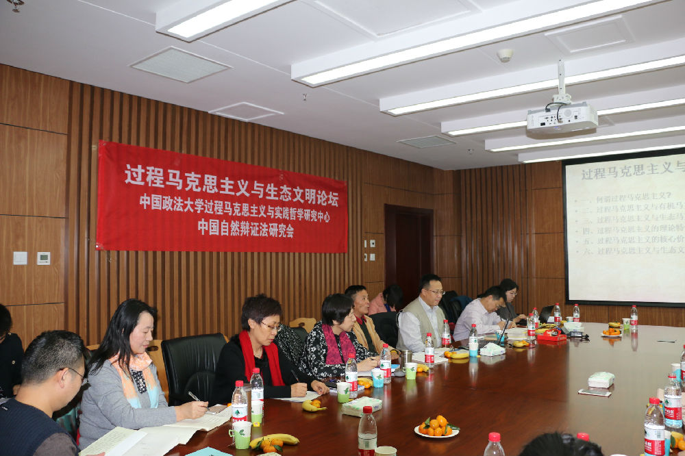 2015年11 月18 日, 由中国政法大学过程马克思主义与实践哲学研究中心和中国自然辩证法研究会联合举办的“过程马克思主义与生态文明论坛”在中国政法大学学院路校区科研楼B205顺利召开。美国过程研究中心中国部主任、中美后现代发展研究院执行副院长王治河教授应邀作了主题报告,就过程马克思主义的内涵、理论特色、核心价值观及其与生态文明的关系等问题进行了探讨,指认过程马克思主义与有机马克思主义是一体两面,倡导厚道地对待自然,厚道地对待他人,厚道地对待未来世代、厚道地对待自己,要勇敢地活出生命,活出风格,活出优雅,活出美。中国自然辩证法研究会副理事长、北京师范大学科学与人文研究中心主任刘孝廷教授到会,并对王治河教授的报告作出富有新意的点评;北京出版集团副总编高立志,北京师范大学开元体育