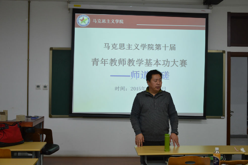 已成功地举办了多届教学基本功大赛,由于有声有色地形成自己的独特风格,受到校领导特别是冯世勇主席的多次表扬,也真正达到了提高青年教师教学能力和教学水平的目的,涌现出一批批优秀的深受学生欢迎的老师,可以说,他们从讲台走向这个舞台,又从这个舞台走向更高的领奖台。因此,青年教师教学基本功大赛在促进青年教师的成长以及新老教师之间相互交流并共同提高中,起到了不可替代也无法或缺的积极作用。最后,他希望大家继续发扬马院“一届带一届”的教学传统,不断提高全院教学质量;预祝年轻的5位选手取得好成绩;感谢各位专家评委、各位老师和同学们的参与和支持。