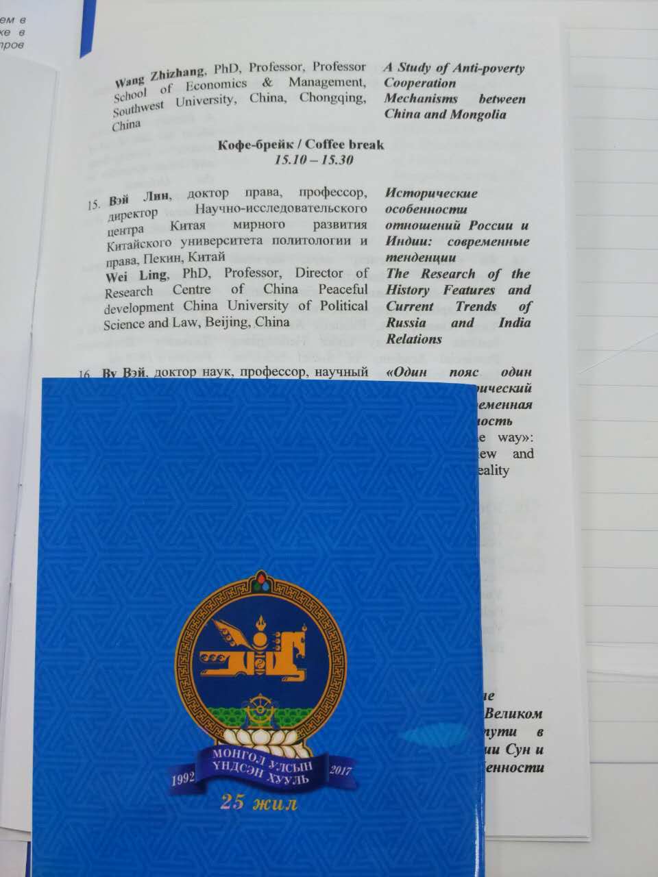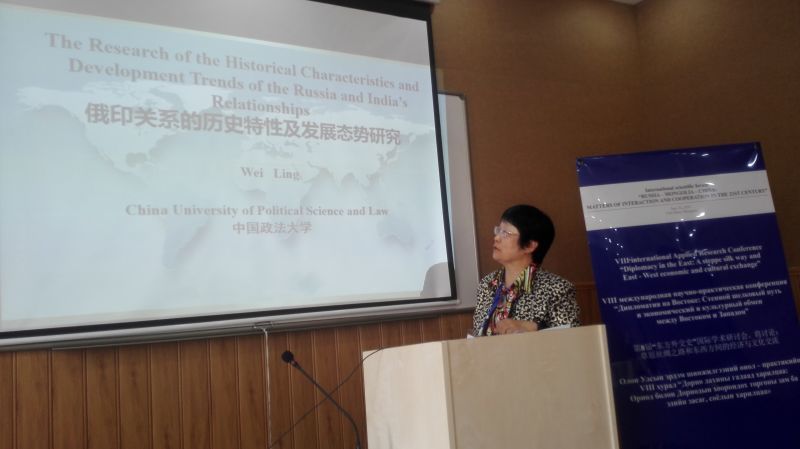 6月21-23日,应蒙古国立大学的邀请,卫灵代表中国政法大学赴蒙古乌兰巴托参加国际学术会议。中国政法大学是此次会议主办方之一。原国际法学院院长莫世建教授也出席会议。会议主题为“俄国—蒙古—中国:21世纪相互关系与协作”。卫灵以中英文形式做了题为《俄印关系的历史特性及发展态势研究》的发言并回答提问,引起到会学者的兴趣。