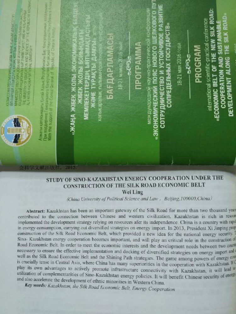 5月19-21日,卫灵教授受哈萨克斯坦共和国阿里-法拉比国立大学当代中国研究中心的邀请,赴阿拉木图参加“一带一路沿线国家合作与可持续发展”国际学术研讨会。中哈俄三国学者参加会议。会议由中国驻阿拉木图领事馆出资筹办。此次中方报名参会人数较多,会议根据学者的论文和已有成果发出邀请,中国共有4名学者参会。习近平2013年首次提出丝绸之路经济带建设倡议,就是在中亚大国——哈萨克斯坦。此次会议研讨中国与中亚国家的合作问题,讨论如何使丝绸之路经济带建设与中亚国家的发展战略对接。在主办方安排下,卫灵教授从地缘战略的角度,在大会上做了题为《丝路经济带建设下的中哈能源合作研究》的发言,并一一回应提问,被哈方学者评价为:打破了以往中方象征性表述的印象。