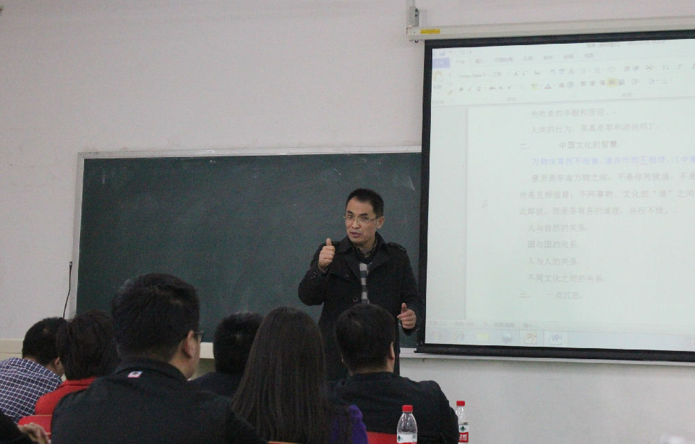 接下来比赛正式开始。首先出场的是郭继承老师,他讲授了对《中庸?三十章》中“万物并育而不相害,道并行而不相悖”理念的理解;第二位参赛者是周增光老师,她讲授了《中国近现代史纲要》中“晚清政府面临的危机”这一专题;第三位参赛者是吴韵曦老师,他讲授了《毛泽东思想和中国特色社会主义理论体系概论》中“社会主义改造的背景”这一专题。不管是郭继承老师旁征博引、鞭辟入里的分析,还是周增光老师声情并茂、娓娓道来的讲述,抑或吴韵曦老师夹叙夹议、史论结合的论证,都赢得了在场听众的一次次热烈掌声。