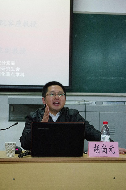 副教授、中共党史专业学科带头人胡尚元两位学者同台演讲,共同解读党的十八大。学院分党委书记卫灵教授主持会议,学院院长马抗美教授、学院分党委副书记兼副院长阮广宇副教授、副院长孙美堂教授、邰丽华教授以及孔祥宇教授、张秀华副教授、李良才老师等到场聆听了讲座。