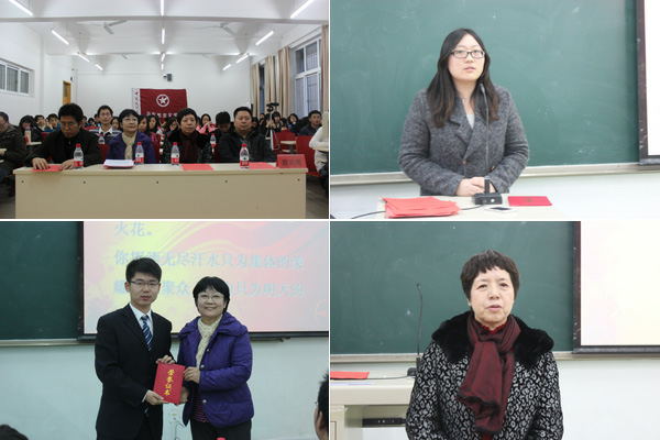 随着一段激动人心的开场视频,颁奖典礼进入第一环节。几位老师为三好学生、优秀学生干部、 优秀学生奖学金、科研创新奖学金获得者颁奖。颁奖同时,老师对各位获奖同学表示祝贺,并与他们亲切合影。