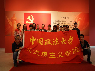 整个主题教育参观活动由主办方—人民出版社的徐老师指导。在徐老师的组织下,同学们首先进行了入党誓词的宣誓活动。在展览馆庄严的宣誓区,新老党员在鲜艳的党旗下进行宣誓。整个宣誓活动庄重而神圣。作为老党员入党誓词的重温,作为新党员入党宣誓仪式,宣誓活动激发了他们对党90周年历程的自豪感以及祖国建设的使命感和责任感。随后,在徐老师的带领和讲解中,同学们开始参观展览。此次展览分为四篇,八大专题,分别展示了马克思主义在中国传播历程中的重要文献,以及马克思主义中国化、时代化、大众化的重要理论成果。数千件的展品中,不乏珍贵的历史文献,如版本齐全的《共产党宣言》、《资本论》和《毛泽东选集》等等,另外还包括少数民族文、外文和盲文的马列经典著作。除此之外,还有中国当代90位极具影响力的书画艺术家以此展览内容为主题创作当代艺术作品,同学们感染在繁多的红色经典著作中,直观的感受到了马克思主义在中国的发展历程,更加坚定了对马克思主义的信仰。