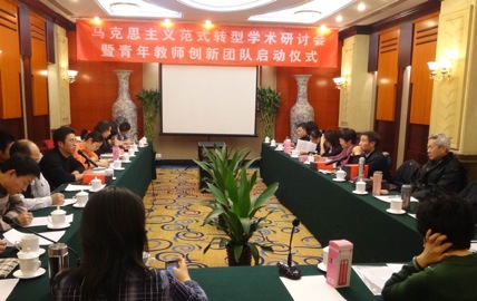 张秀华副教授对范式的内涵、对理论范式和理论研究范式的区别做了精深的论述。谢军博士对马克思主义研究旨趣的转型做了阐述。王强博士就中国近现代史领域研究范式的转型,从跨时间、跨地域、跨学科、跨视角等方面做了介绍。赵庆杰副教授对传统马克思主义范式在伦理学研究领域的贡献和局限进行了分析和反思。于丽博士对全球化的分析范式及其与马克思主义的关系做了精彩发言。万蓉副教授对范式作为科研信念、习惯和方法在学术研究以及政策制定中的作用做了深入的评述。傅杨副教授就范式生成和传播的路径阐述了自己的思考。黄东副教授结合着文化领导权以及合法性塑造的路径转化阐释了马克思主义范式转型研究的必要性。侯松涛结合着建国初期马克思主义大众化路径的系统建构及其在当代的适应性,论述了马克思主义传播范式转型的迫切性。张文灿从中共女性问题和西方女权主义的比较研究中,阐述了研究范式的相互借鉴对开阔学术思路、形成问题意识、克服视野屏蔽等问题的重大意义。虞花荣副教授从思想政治教育和西方公民教育的比较,阐释了马克思主义和西方人文科学在研究和思考范式上的相互参照意义。谢启扬副教授结合着中国传统文化的转型问题,就范式转型的限度问题进行了界定。王嘎博士从苏联政体和文化意识形态转型的角度,提出了马克思主义显性话语和隐性话语的相互转化的必要性。常绍舜教授对学术研讨会进行了总结性发言,指出马克思主义范式转型问题实质上就是马克思主义在当代的发展问题;要立足现实、立足文本、立足学术对话,结合着当代我国社会发展的重大问题,结合着我国独特的经济、政治、文化特点,增强马克思主义的时代性和现实性。会议持续了三个多小时,因时间关系未能发言的老师也在会后进行了深入的交流。
