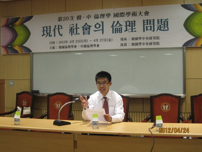 2012年4月21日至27日,由中国伦理学会和韩国伦理学会共同主办的“第20次中韩伦理学国际学术大会”在韩国首尔的韩国学中央研究院举行,近百名中韩学者参加了会议。与会学者从理论、历史与现实三个层面围绕“现代社会的伦理问题”这一主题展开了广泛而深入的讨论。