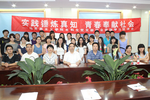 首先,本科生党支部的宣传委员马凯同学总结了近年来本科生党支部开展社会实践活动的基本情况。他谈到,学生党员在暑期社会实践中发挥了重要的带头作用,学院暑期社会实践成果突出;并且支部充分发挥专业优势,以创新理念打造支部精品特色活动,积极开展丰富多彩的社会实践,比如“绿马行动”、“思想导航”系列活动以及红色“1+1”支部共建活动。