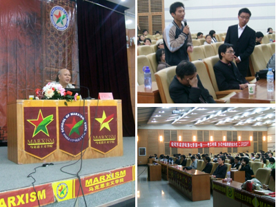 讲演开始后,王老师先以幽默的语言解释了政法大学与考古的联系,一下子拉近了大家与老师的距离。接着王老师引入正题,总体阐述方面主要分为四部分内容:筵席与盘案、古代分餐制、分餐向会食的转变、进食具及其用法。在第一部分,王仁湘老师以孔子的“席不正不坐,割不正不食”为引,向大家解释了古人的起居习惯以及“筵席”的来历,使大家对古人的一些习俗有一个大致的了解,并以典故事例解释了“盘案”的历史;通过PPT动画考古图片形象生动的向大家讲述了大量关于古代食具的知识的方式,让大家对此有了更加直观、深入的认识。接着,王老师从当代社会的会餐制开始,旁征博引,通过历史典故向大家讲述古代分餐制的历史。然后从历史发展角度,王老师详细介绍了在唐朝以后分餐制向会食制的转变背景及其原因,并联系各方面的事实事例生动的讲述了饮食方式的转变所体现出的各民族文化的相互影响、相互交融。在这些历史的知识介绍之后,王仁湘老师向大家介绍食具及其用法,其中代表的三件用食器具为匙、勺、筷。并从历史考古角度向大家介绍了其起源、发展,解释从中体现的关于各时代的历史背景、饮食文化,打开了大家的视眼,扩展了大家的知识面,启发了大家的思维,使大家对此都有所思考。