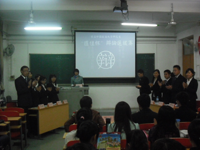 2009年10月29日晚7:00首届“汇佳杯”研究生辩论赛首场半决赛在教学楼107举行。本场比赛在刑事司法学院和开元体育