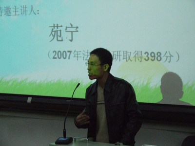 本次讲座邀请到了银河法律教育中心高淼鑫老师以及07年法大考研高获得者苑宁与现场同学交流。