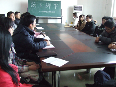 学生知识面广、多学科综合素质高的特征。也有部分的同学比如邓彪是师兄则选择考研继续深造,将来以高学历作为职业选择的筹码。大家相互交流,同学们都提出了自己的一些想法和问题,老师积极的回答相关的问题,会场的气氛十分的融洽。
