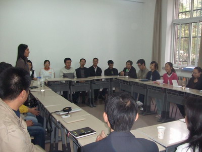的整体现状和今后发展谈起,希望08级新生能够尽快完成本科生到研究生的身份转换,尽快进入角色,学业上取得好成绩。张秀华博士和解启扬博士与新生们分享了进行理论研究的方法并针对同学们读书中遇到的困惑给予建议。