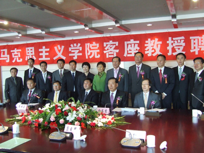 为金东震先生授予客座教授聘任书,师生们以热烈的掌声对金东震先生表示祝贺。