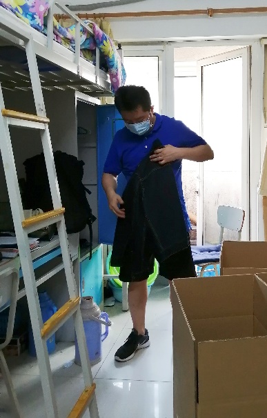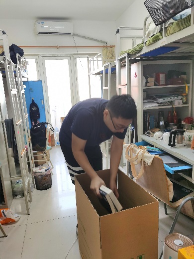 此外,学院在京学生也积极报名学院志愿者,帮助毕业生物品整理工作。张灏鸣主动帮助同学打包行李,两天内完成了五位同学的行李打包及邮寄工作。