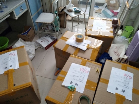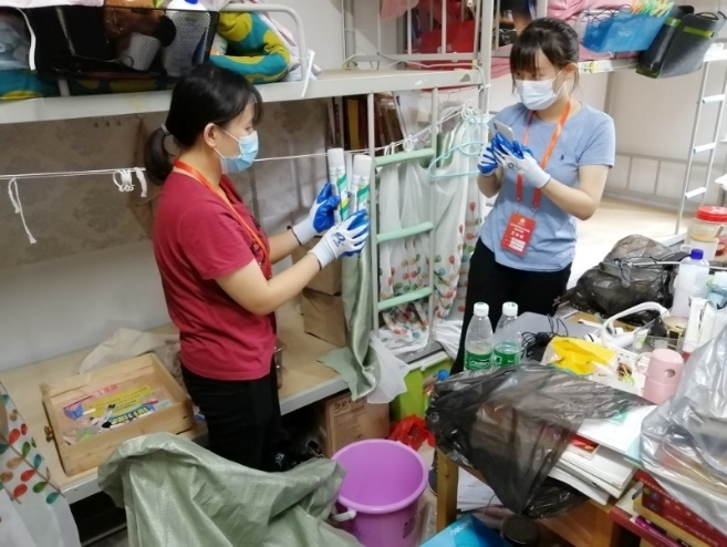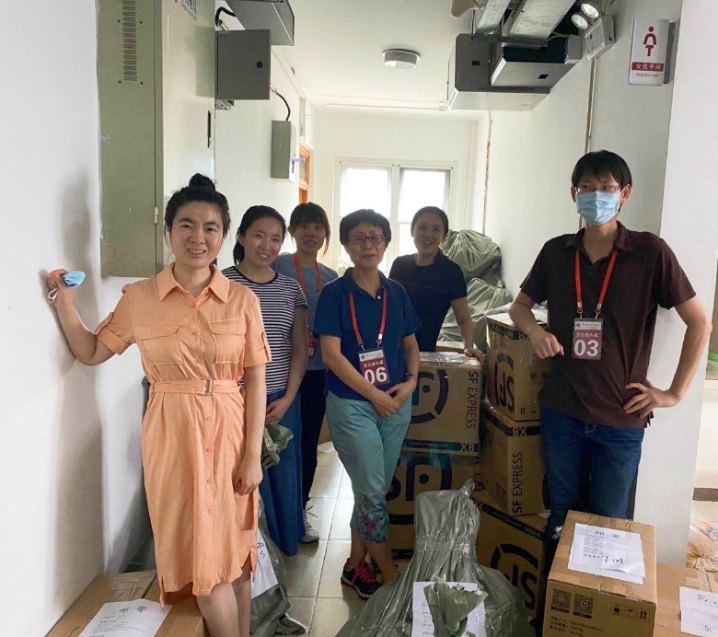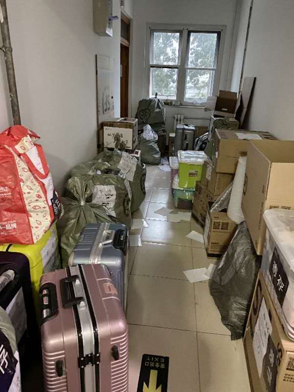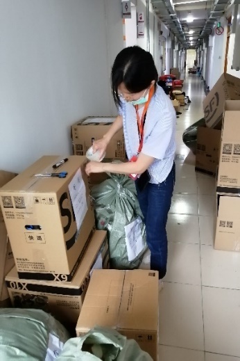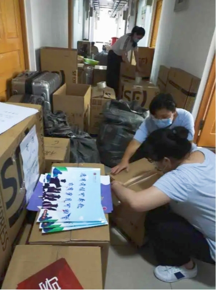 学院行政党支部全体教师参与此次毕业生工作。组织保障小组原本负责沟通协调和物资供应的王丽娜老师和贺颖清老师也参与到一线的物品整理和行李寄送工作。