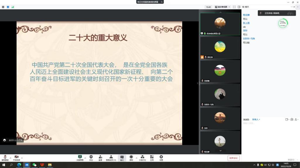 中国共产党第二十次全国代表大会,是在全党全国各族人民迈上全面建设社会主义现代化国家新征程、向第二个百年奋斗目标进军的关键时刻召开的一次十分重要的大会。为了深入学习贯彻党的二十大精神,推动二十大精神进基层、进校园、进课堂,马克思主义中国化与国情研究所开展了集体学习备课活动。