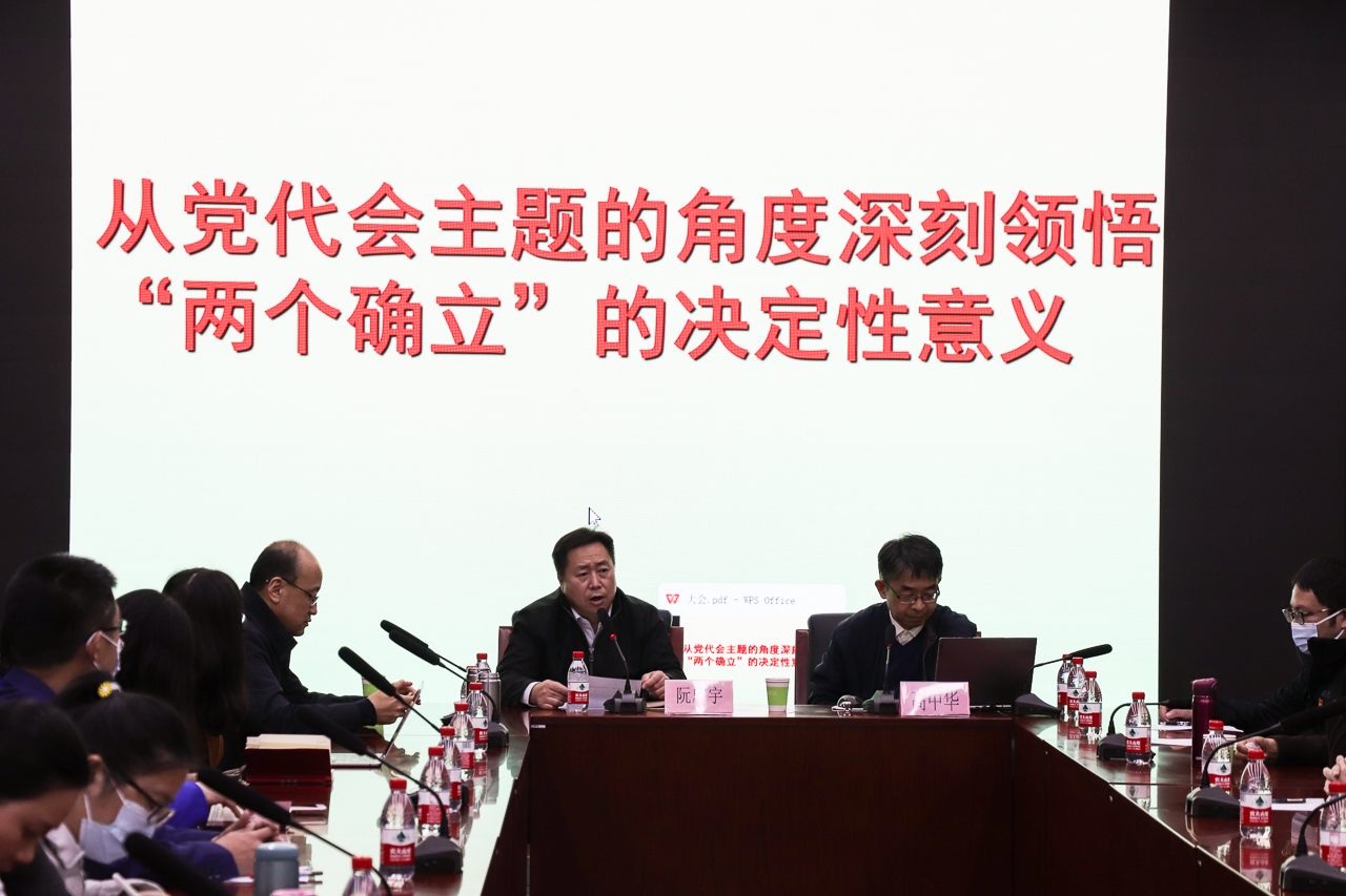 报告会上,高中华做了“从党代会主题的角度深刻领悟‘两个确立’的决定性意义”主题报告。报告中,他系统阐述了党在革命、建设、改革和新时代不同时期中的基本理论及其时代意义,系统梳理了党的百年奋斗历史进程,重点解读了党的二十大报告和党章修改的相关内容,深刻分析了“两个确立”的政治内涵和实践意义,提出了在新时代我们仍需要坚持和弘扬伟大建党精神和延安精神,不忘初心使命,坚定历史自信,增强历史主动,发扬斗争精神,为实现党的二十大提出的目标任务而团结奋斗。