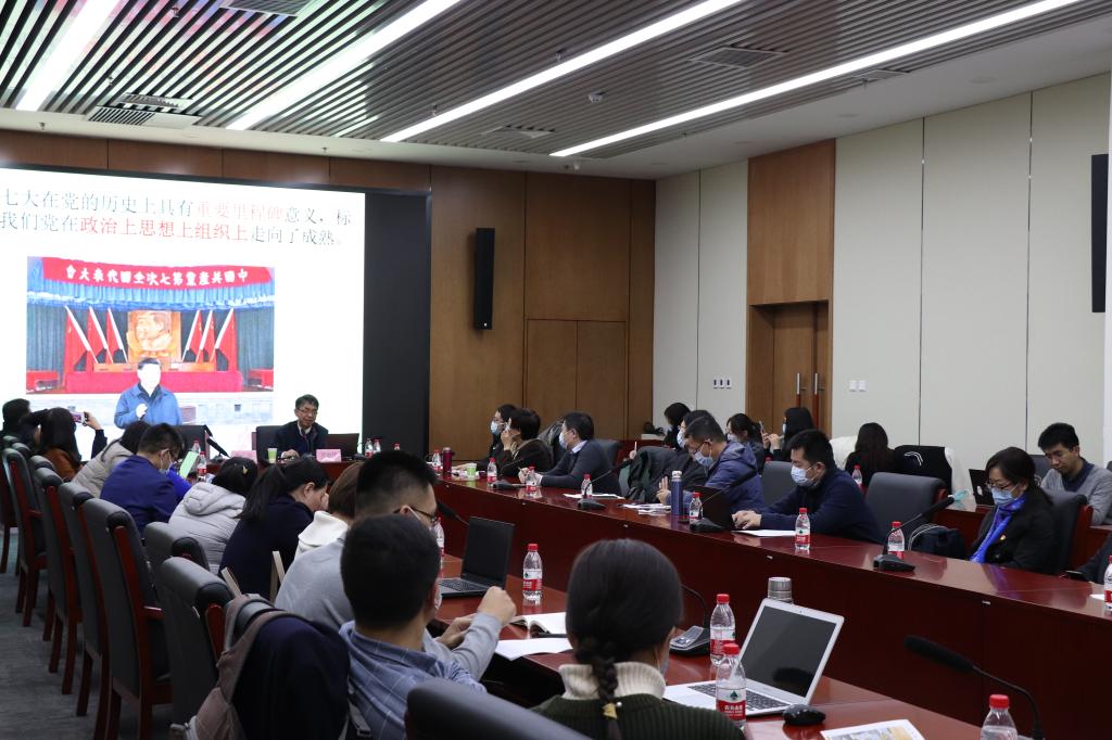 举行党的二十大精神学习专题报告会。中共中央党校(国家行政学院)党史教研部高中华教授应邀作主题报告,学院全体教职工和学生党支部书记参加,学院党委书记阮广宇主持报告会。