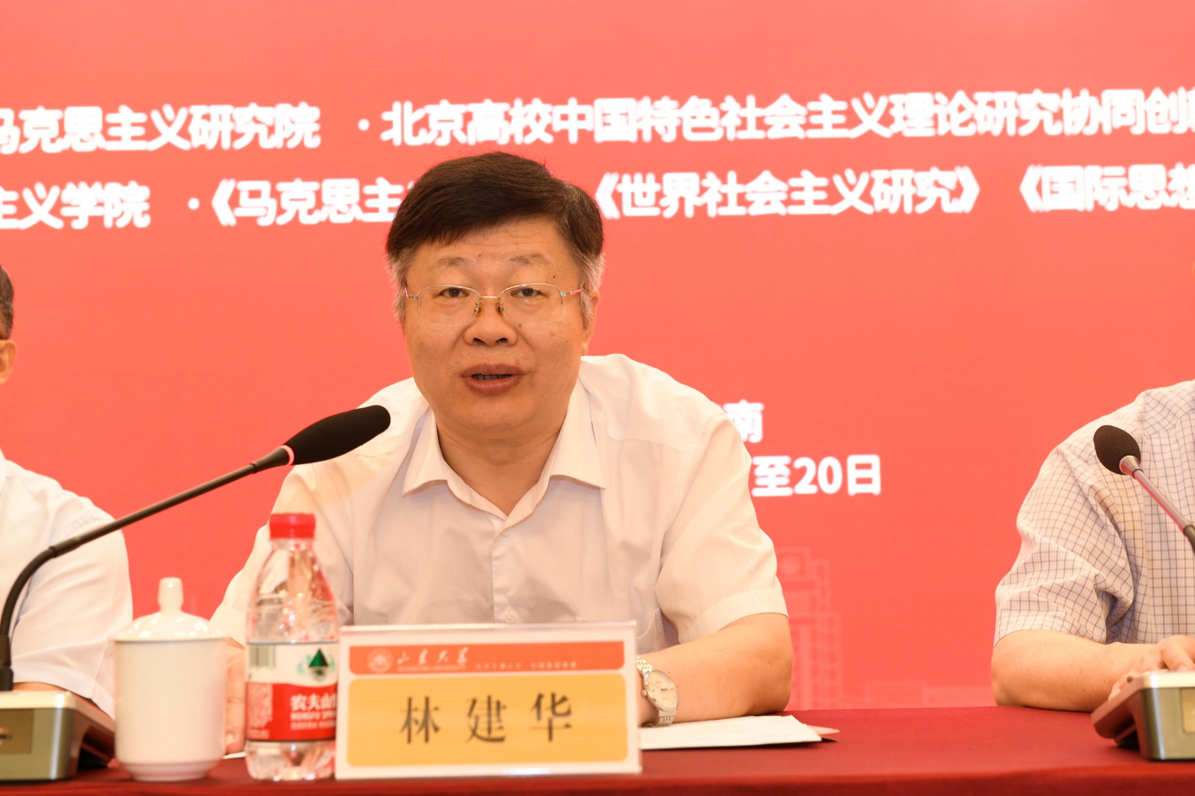 林建华致辞认为,党的二十大报告在总结历史经验基础上,提出并阐释了“两个结合”“六个必须坚持”等推进理论创新的科学方法,为继续推进党的理论创新提供了根本遵循。围绕论坛主题,林建华教授谈了三个方面的学习体会,一是辩证唯物主义和历史唯物主义是马克思主义的世界观和方法论;二是深刻把握习近平新时代中国特色社会主义思想的世界观和方法论;三是“六个必须坚持”是习近平新时代中国特色社会主义思想的世界观和方法论的基本内容。