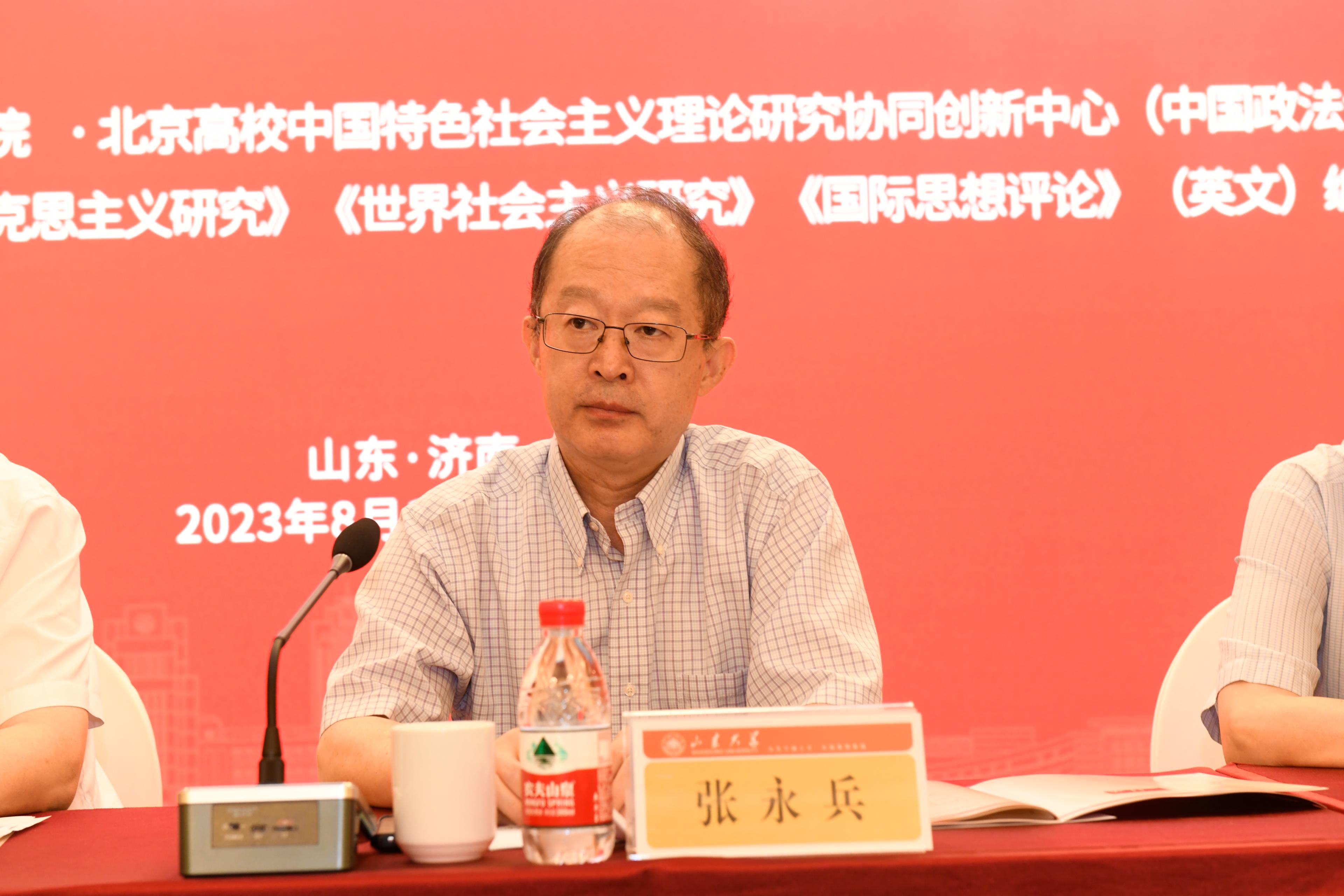 张永兵代表山东大学向出席会议的各位专家学者表示热烈的欢迎和诚挚的问候,认为召开“2023年全国马克思主义基本原理论坛”,共同阐释马克思主义世界观和方法论,树立学术观点,展示学术成果,共商学术发展,为全面落实党的二十大精神,推进马克思主义中国化时代化注入学术智慧,具有特殊而重要的意义。