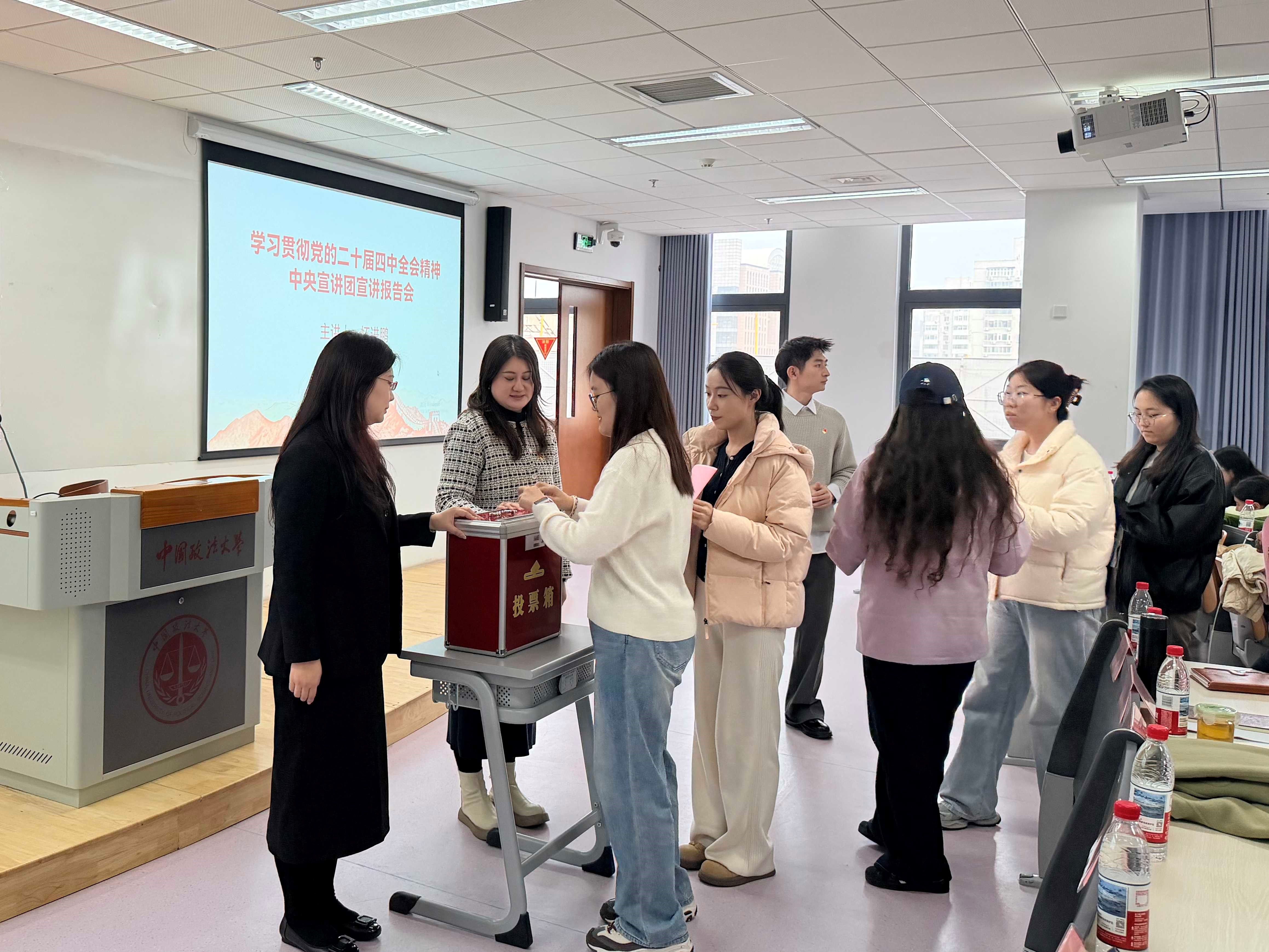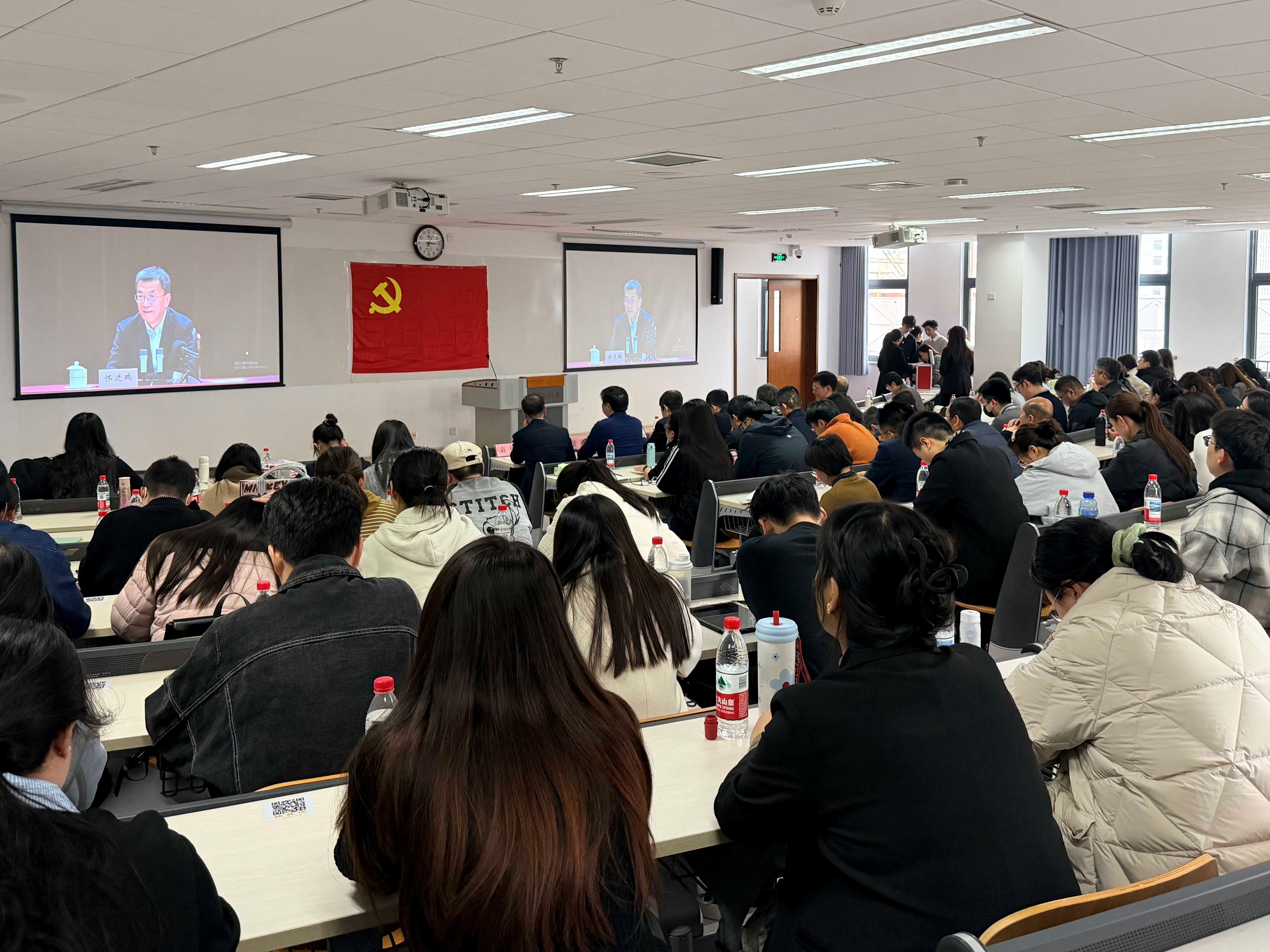 选举工作结束后,大会组织全院党员师生集中观看学习教育部党组书记、部长怀进鹏所作的学习贯彻党的二十届四中全会精神宣讲报告,全面准确学习领会全会精神以及关于教育改革发展的新部署新要求,进一步推动全体党员师生自觉将会议精神转化为实现学院高质量发展的内在动力。