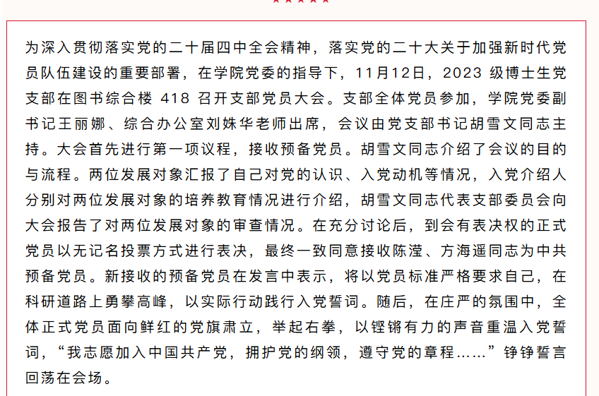 党建领航聚英才 纳新聚力跟党走 ——2023 级博士生党支部召开支部党员大会