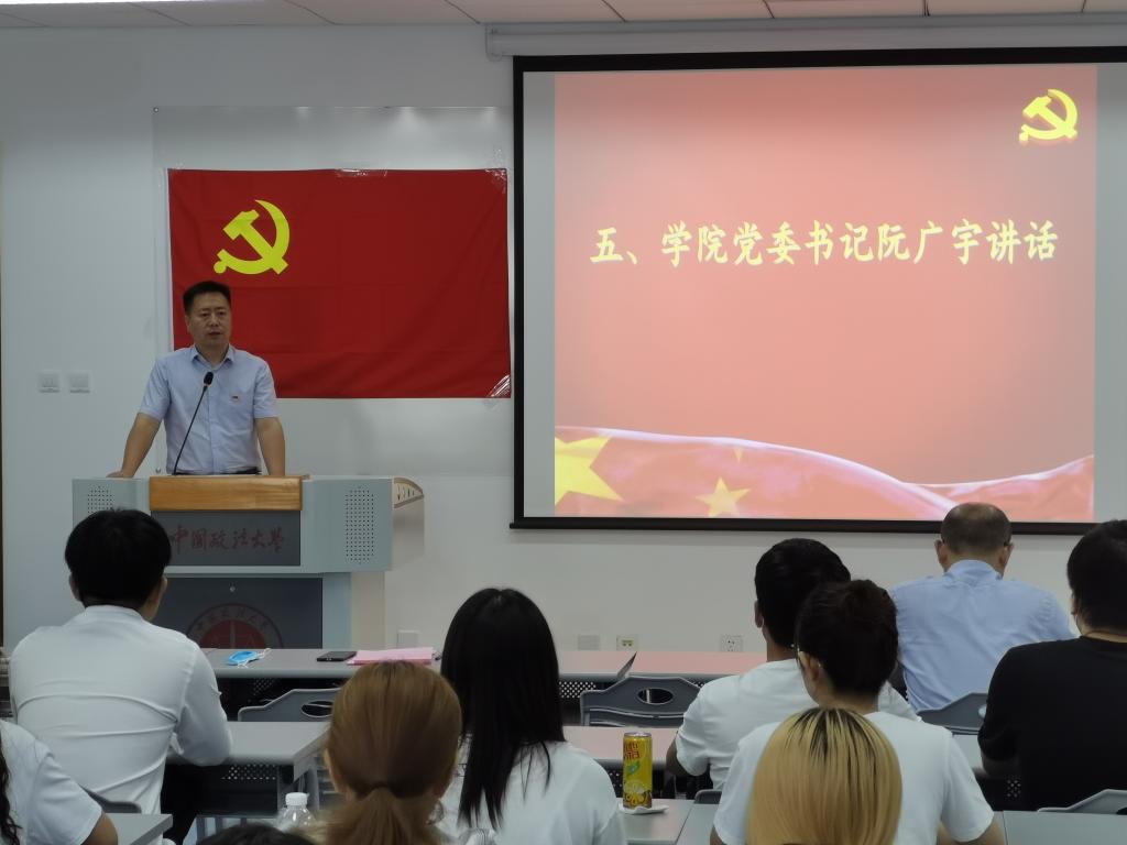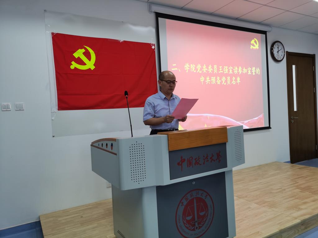 党委在中国政法大学学院路校区新综合楼412教室举行隆重的预备党员入党宣誓仪式。学院党委书记阮广宇、党委委员王强出席仪式,2021年学院党委新接收的全体预备党员参加了活动,学院党务秘书金璐主持仪式。