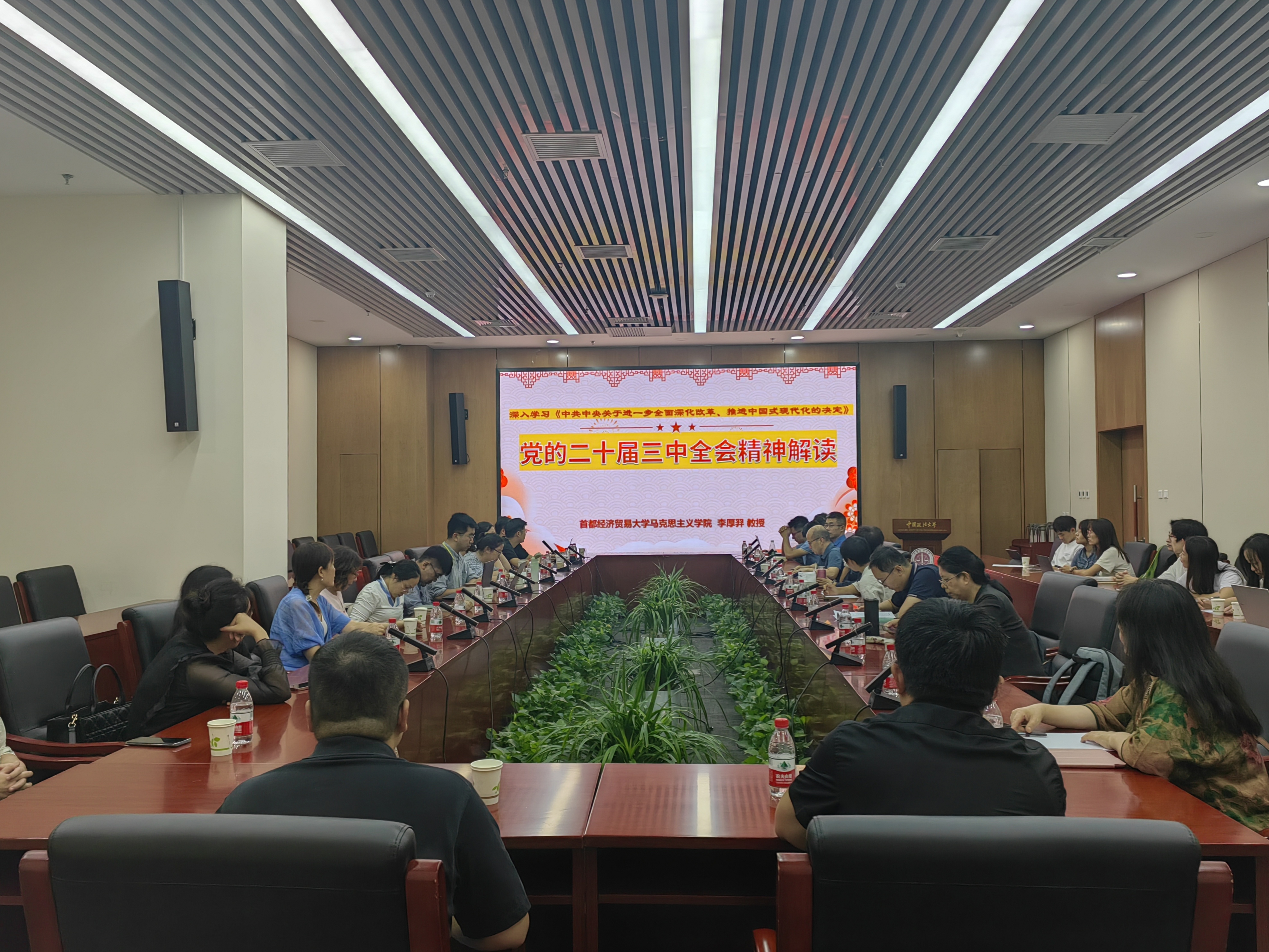 报告会上,李厚羿教授围绕党的二十届三中全会公报及《中共中央关于进一步全面深化改革、推进中国式现代化的决定》(以下简称《决定》的核心内容,从“党的二十届三中全会总体介绍”“公报和《决定》内容和逻辑分析”以及“如何在新形势中理解三中全会精神”三个方面进行全面细致讲解。整场报告精彩生动、分析透彻,为学院师生学习贯彻党的二十届三中全会精神起到了积极促进作用。