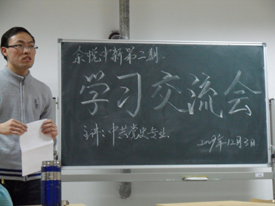 09级硕士研究生第二期“余悦申新”班级学习交流会于3日晚七点在新1号楼B103教室成功举办。