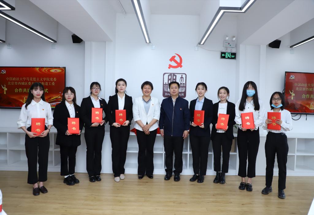 阮广宇在致辞中表示今天的揭牌仪式代表着双方党建共建工作的进一步深化、落实、落地,也是迎接建党100周年,党史学习教育出实效的实践载体,他对大栅栏街道工委为学生提供实习实践平台表示感谢,同时对参加实践的学生提出要在实践当中认真学习,锻炼自己、提高自己。他期待双方以共建为纽带,加强沟通,密切联系,健全合作长效机制,努力形成校地合作共建的典范;充分发挥法大马院办学特色和优势,有效整合资源,在干部培训、党史教育、国家治理体系治理能力现代化等方面给予大栅栏街道积极协助;同时,也希望大栅栏街道在提供实习实践、志愿服务岗位,推荐优质社会资源参与思政课教学等方面,为学校“双一流”建设注入动力。期待双方始终秉持为党育人、为国育才的初心和使命开展合作,以丰富有力的创新举措和实在显著的共建成效向党的百年华诞献礼!
