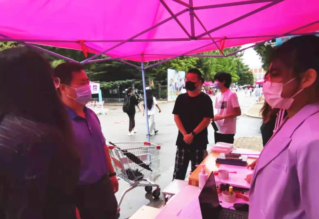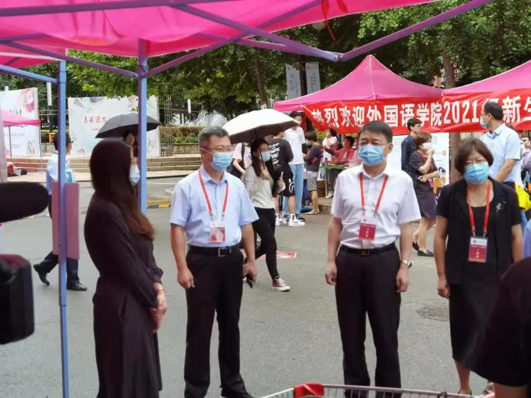 校党委书记胡明、校长马怀德、副校长李秀云及相关部门负责老师视察了迎新工作,学院党委书记阮广宇、本科生辅导员马啸向马校长介绍了开元体育