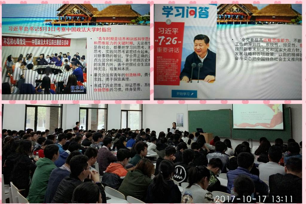 最后,赵方结合自身学习习近平总书记重要讲话精神的体会,对比分析了开放式创新和封闭式创新的区别,就如何培养大学生创新思维和提升创新能力给出了建议,鼓励同学们努力培养开放式创新思维,合理规划学习生涯,通过加强理论学习指导个人成长成才,以良好的精神风貌喜迎党的十九大的胜利召开。