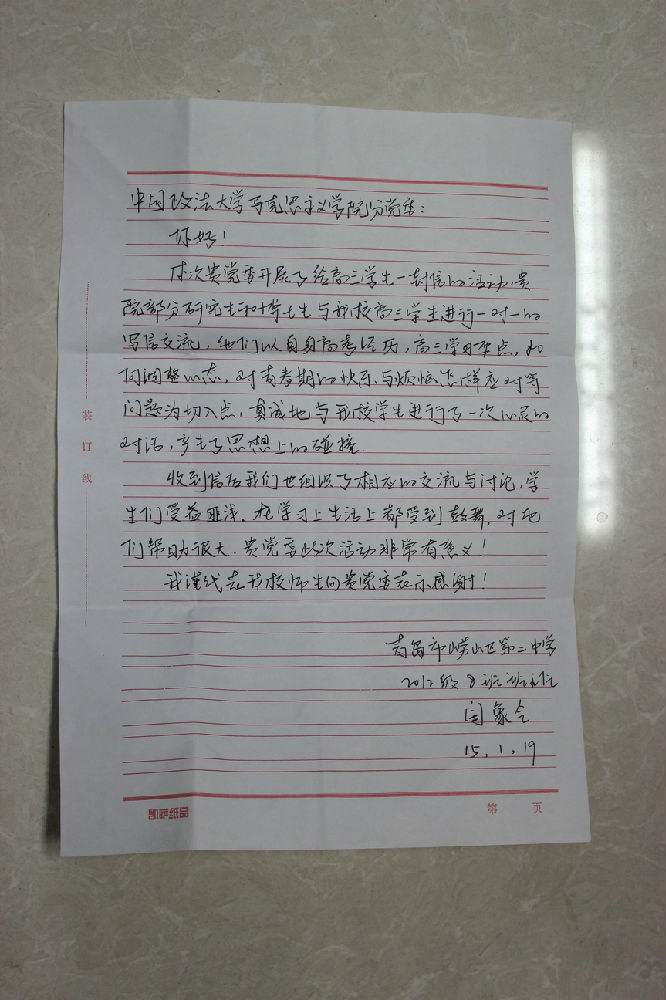 全体研究生为主体,采取一对一的写信方式,主要内容以自己的高考经历和成长感悟为主,寄给山东省青岛市崂山区第二中学高三(8)班的同学们。开元体育