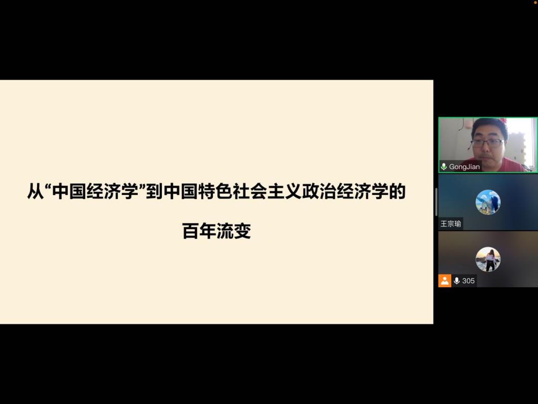 的龚剑老师,题目为《从“中国经济学”到中国特色社会主义政治经济学的百年流变》。自从习近平总书记2015年首提“中国特色社会主义政治经济学”以来,理论界围绕中国特色社会主义政治经济学产生了诸多理论成果,不过其中关于历史渊源的探讨较少。讲座从梳理“中国经济学”的内涵出发,勾勒从“中国经济学”到建国以来社会主义政治经济学,再到中国特色社会主义政治经济学的发展脉络,从而为构建中国特色社会主义政治经济学提供一项理论参照。