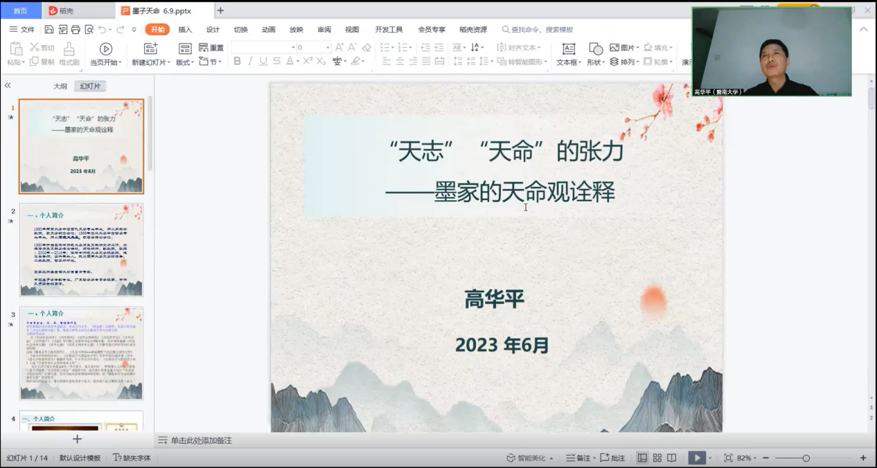 “新视野”系列学术讲座第131讲以线上形式举行。本场讲座邀请到暨南大学高华平教授主讲“天志与非命的张力:墨家天志观诠释”,约100多人参加了本场讲座。讲座还邀请到山东大学秦彦士教授、吉林师范大学薛柏成教授作为对话嘉宾,开元体育