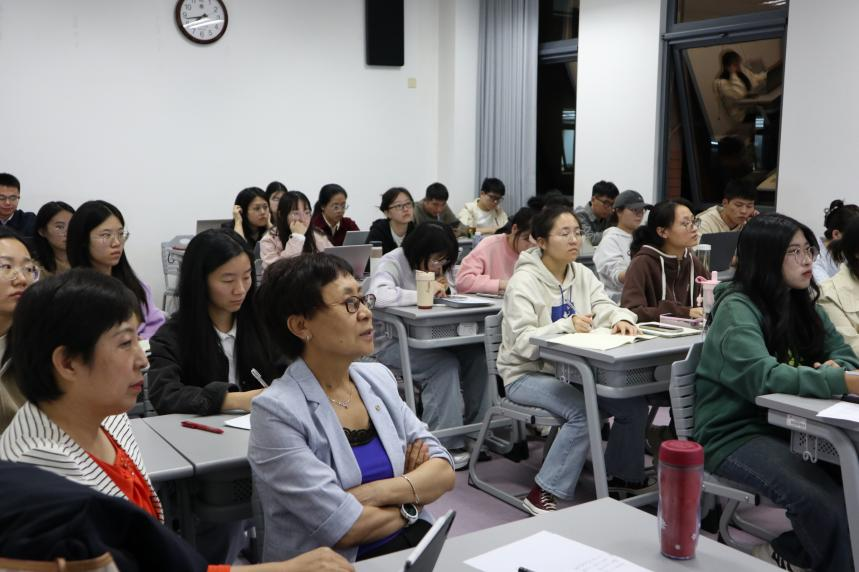 在交流环节,同学们进行踊跃提问,于教授耐心地对学生的问题进行了逐一答疑。同时,金仁淑教授结合世界经济的相关研究对此次讲座进行了点评。金老师指出,中国式现代化是国内学术界研究的重要内容,具有丰富的学理性和现实性意义,而日本的现代化过程则可以为中国式现代化提供一些借鉴和参考价值,这些内容都可以为同学们的后续学习和研究提供较好的思路和灵感。最后,邰丽华教授对此次讲座进行总结,鼓励大家要认真消化吸收此次讲座的精彩内容,并代表学院表达了对于金富教授的感谢。